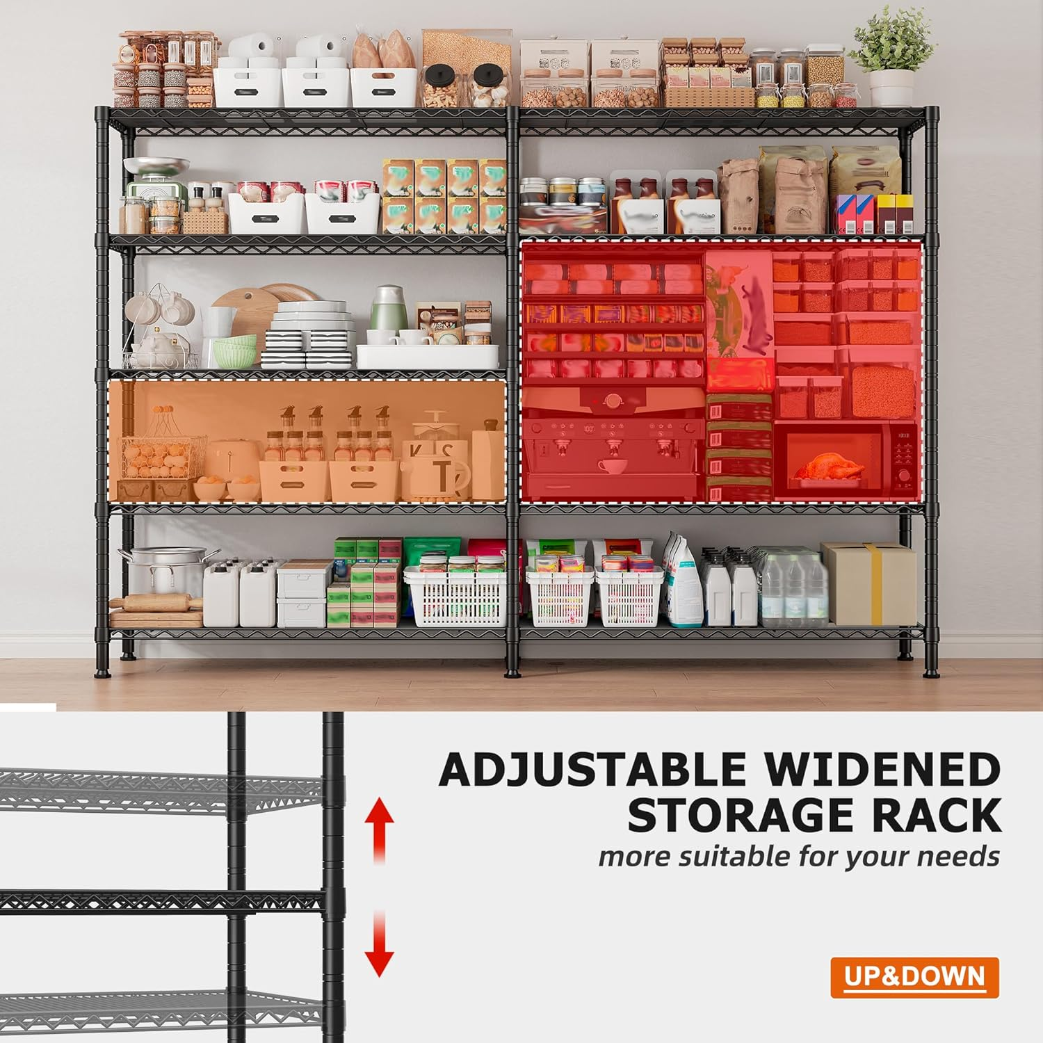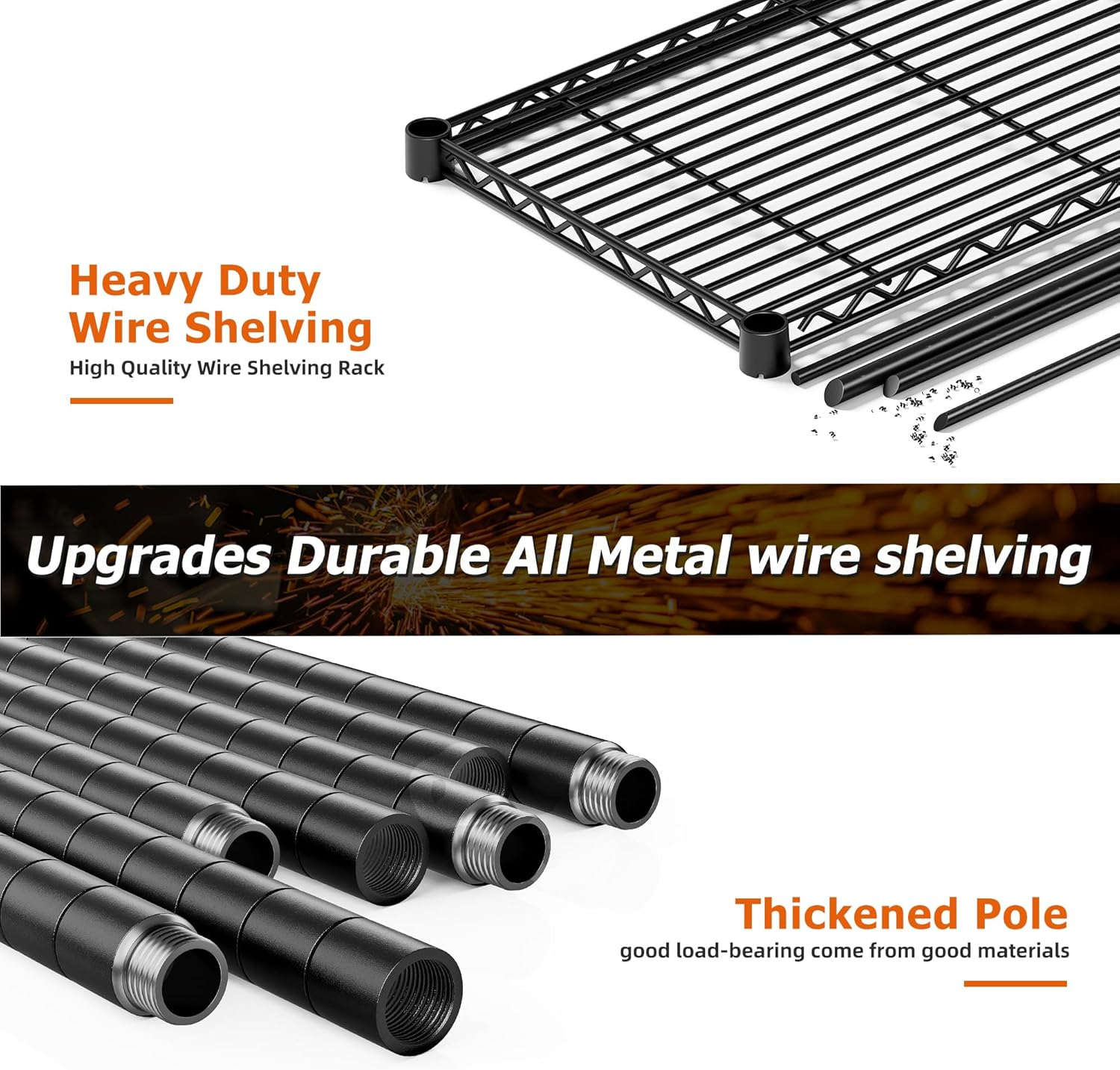 This 1600 Lbs. 5 Tier Wire Shelving Unit features a powder-coated steel frame that resists rust and oxidation. Moreover, its heavy-duty steel wires and reinforced shelves ensure long-lasting performance. Because it is so durable, it can meet storage needs in any environment, from home to industrial use.