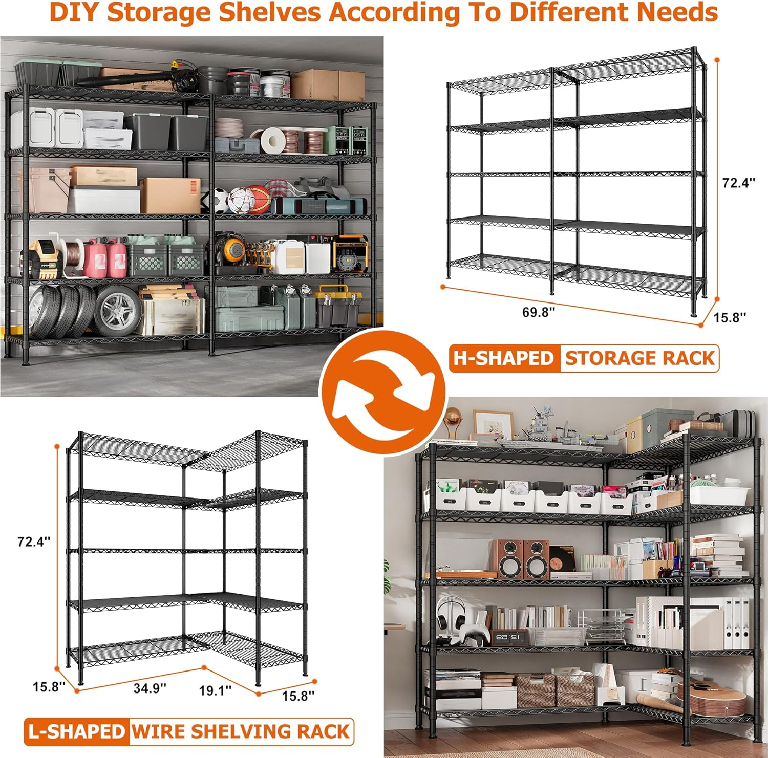 Adjust each shelf to fit items of different heights. In addition, you can assemble the unit in a straight line or L-shape to fit your space. Consequently, it adapts to garages, kitchens, workshops, or commercial areas. In short, it gives you a flexible solution for organizing everything efficiently.