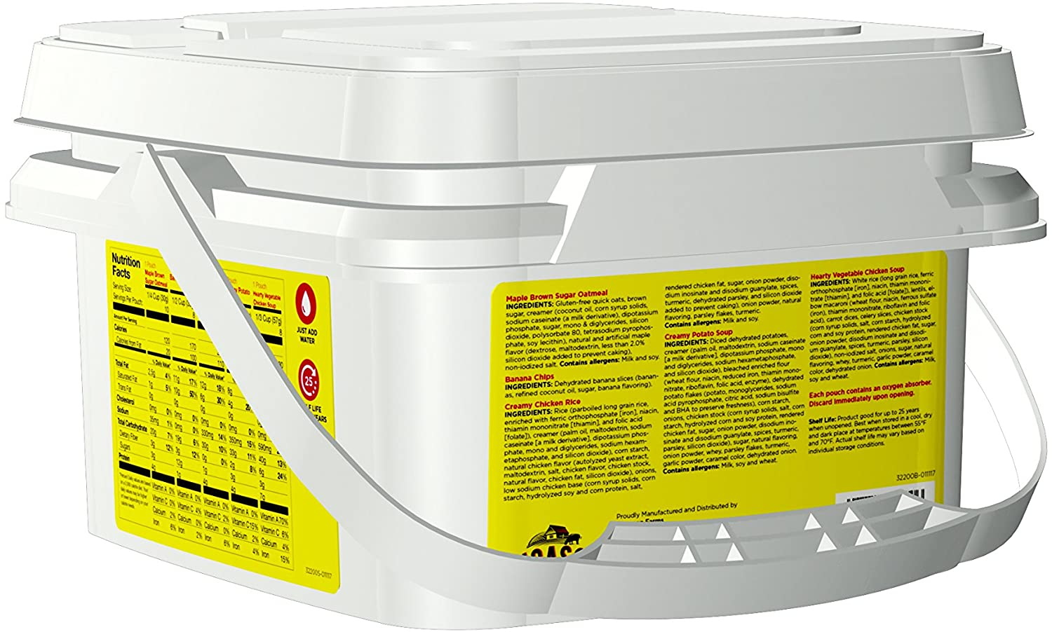 This emergency food kit offers an up to 25-year shelf life, so you can store it long-term without worry. The 1-gallon watertight pail is easy to carry and transport. You can keep it in your home, cabin, office, dorm room, or RV. In addition, storing the kit in a cool, dry, and dark place between 55°F and 70°F keeps it fresh and safe. Therefore, you can confidently prepare for emergencies today and be ready for years to come.