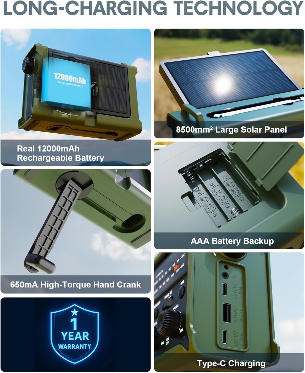 Because of this strong design, the radio performs well during hurricane blackouts, winter storms, and remote camping trips. When batteries fail and sunlight fades, you can still generate power by hand. As a result, this radio becomes a dependable backup when other devices stop working.