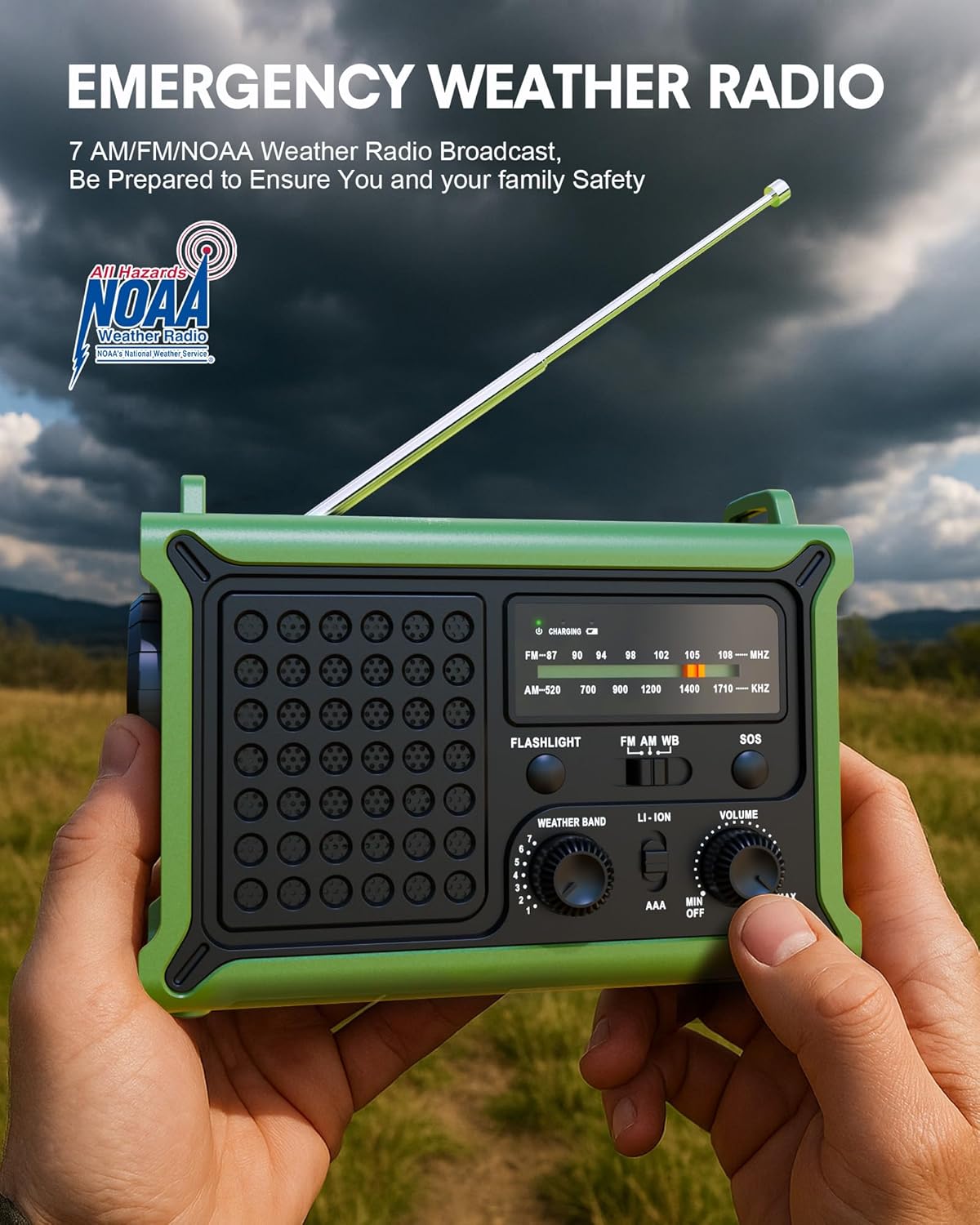 This Emergency Weather Radio with Solar includes a certified 7-channel NOAA weather alert system. The radio automatically locks onto all NOAA weather channels with FCC-approved precision.