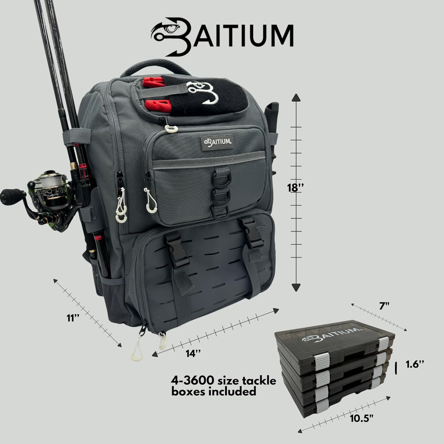 The bag also includes four 3600-size tackle boxes for your lures, hooks, and tools. As a result, you can stay organized and ready for action at any time. Spend less time setting up and more time fishing.