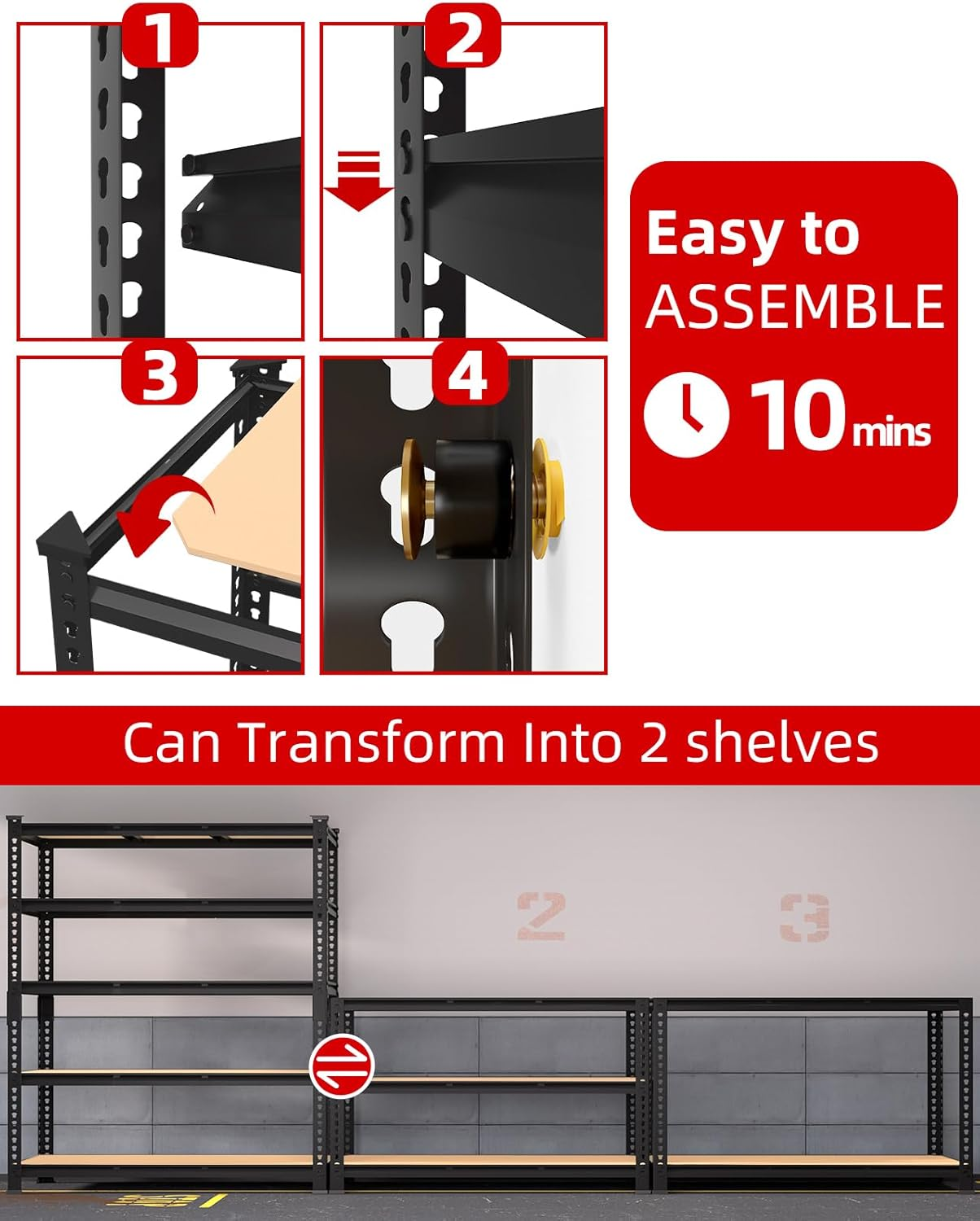 Most importantly, this Heavy Duty Garage Metal Shelving Unit is strong, flexible, and easy to use. It keeps garages, workshops, basements, or offices organized. Moreover, its adjustable shelves, quick setup, and protective footpads make storage simple and worry-free.