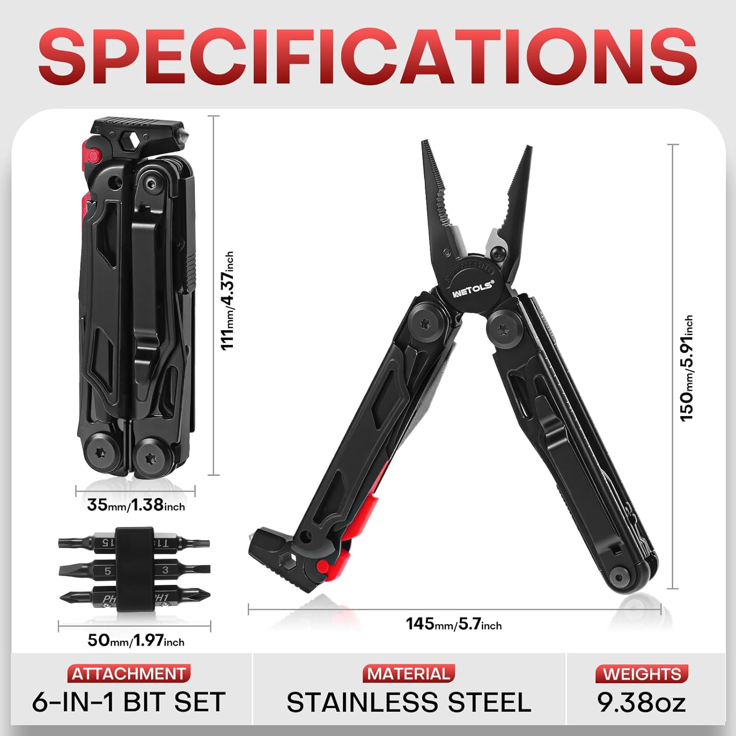 Next, the multitool features hardened stainless steel construction for long-lasting performance. The corrosion-resistant material withstands moisture, outdoor conditions, and demanding use. Despite its durability, the tool remains compact. It measures 4.37 inches closed and 6.65 inches overall, while weighing only 9.38 ounces. Consequently, it delivers strength without adding unnecessary bulk.
