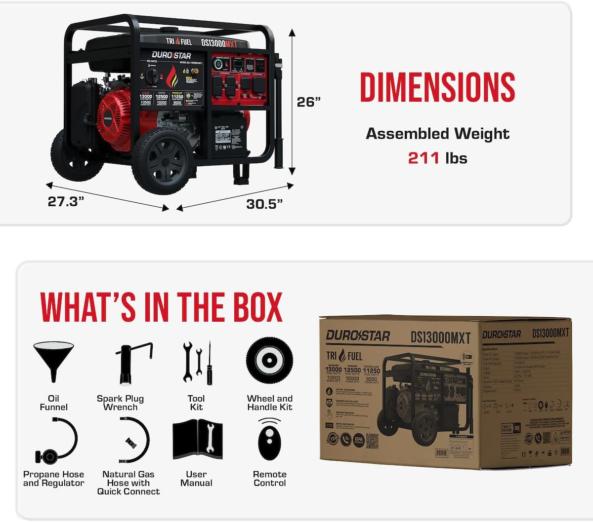 The DS13000MXT tri fuel portable generator offers power, flexibility, and safety in one unit. Not only does it keep your home running, but it also gives you peace of mind. Overall, it is a reliable solution for backup power when you need it most.